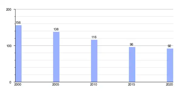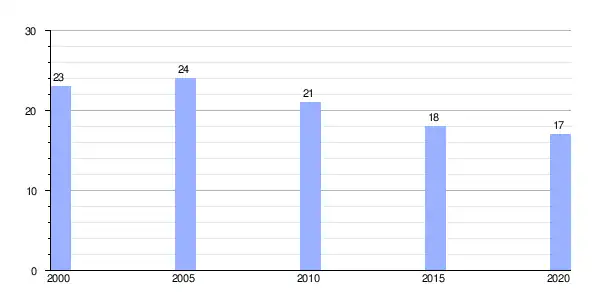 Gráfica de evolución demográfica de Lamaiglesia (parroquia) entre 2000 y 2020 |
