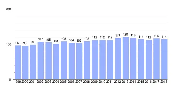 Gráfica de evolución demográfica de Lamansián entre 1999 y 2018 |