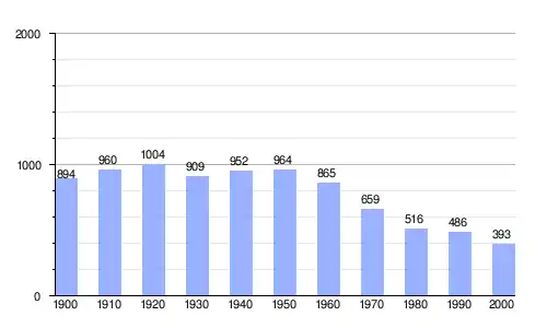 1900 | 1910 | 1920 | 1930 | 1940 | 1950 | 1960 | 1970 | 1980 | 1990 | 2000 | 2007 |