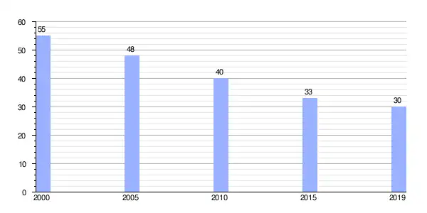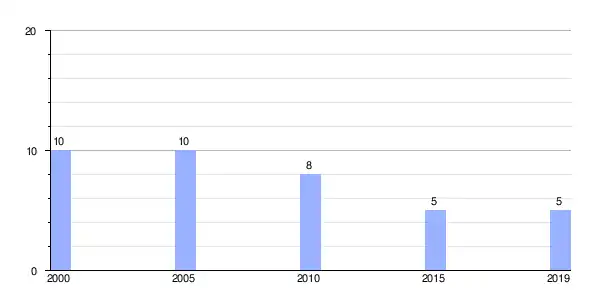 Gráfica de evolución demográfica de Lamas (aldea) entre 2000 y 2019 |