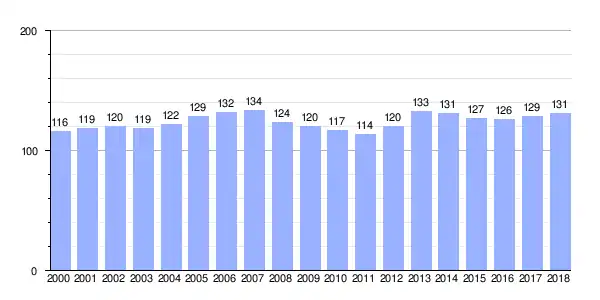 Gráfica de evolución demográfica de Lamiño entre 2000 y 2018 |