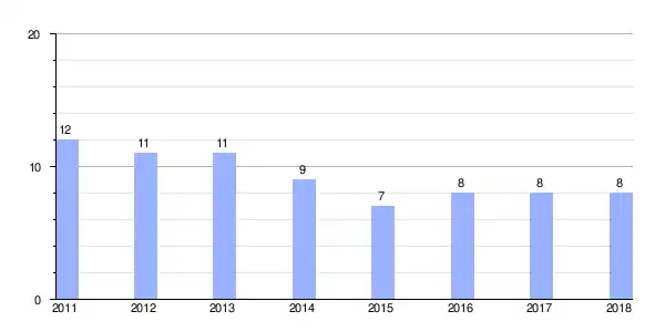 Gráfica de evolución demográfica de Lamparte entre 2011 y 2018 |