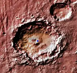 ![]() Cráter marciano Lampland (colores virtuales) | ||