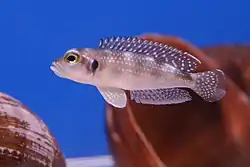 Lamprologus meleagris es una especie de peces de la familia Cichlidae en el orden de los Perciformes.