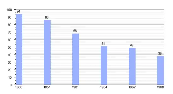 Gráfica de evolución demográfica de Tarciat entre 1800 y 1968 |
