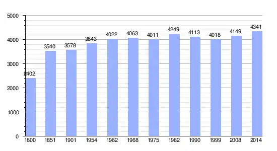 Gráfica de evolución demográfica de Langeais entre 1800 y 2014 |