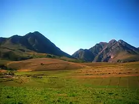 Las llanuras abiertas del Pequeño Karoo lindan con el norte de la cadena, mientras que al sur linda con la Llanuras Agulhas y Overberg.