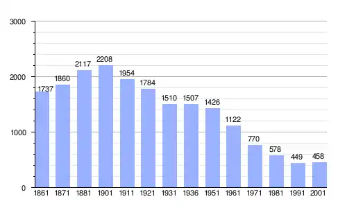 Gráfica de evolución demográfica de Langosco entre 1861 y 2001 |