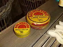 En español, lanolina es un anglicismo de lanolin,[2] a su vez germanismo cultista generado en alemán a partir del latín lana + oleum + IN (sufijo químico para indicar “sustancia”, aceptado en español como “-ina”),[3] lo cual significa literalmente “sustancia de aceite de lana”. La palabra fue acuñada en 1885 por el físico alemán Mathias Eugenius Oscar Liebreich (1838-1908).[4] Durante una época, se conoció como lanolina una marca registrada como término genérico para una preparación de grasa de oveja y agua.[5] El nombre del producto 'Oil of Olay' le fue puesto por su inventor, Graham Wulff, y deriva del nombre de la lanolina, uno de sus principales ingredientes.