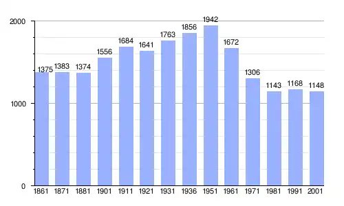 Gráfica de evolución demográfica de Lapedona entre 1861 y 2001 |