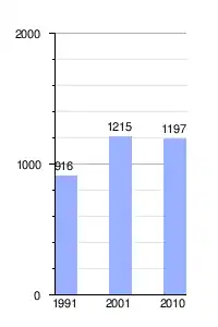 Gráfica de evolución demográfica de Laprida entre 1991 y 2010 |