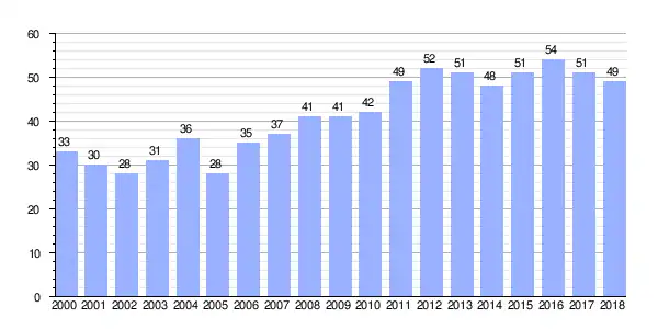 Gráfica de evolución demográfica de Larín de Arriba entre 2000 y 2018 |