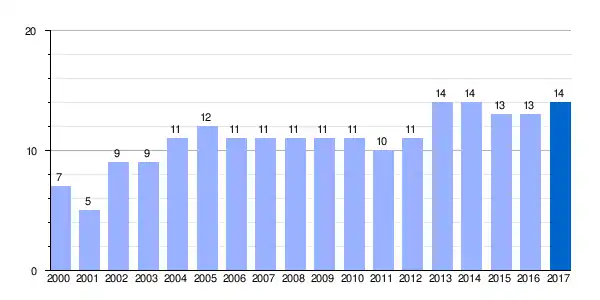 Gráfica de evolución demográfica de Larrazcueta[1] entre 2000 y 2017 |