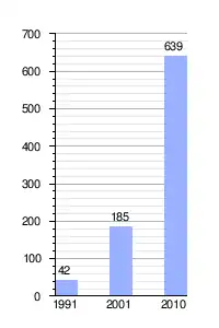 Gráfica de evolución demográfica de Las Delicias entre 1991 y 2010 |