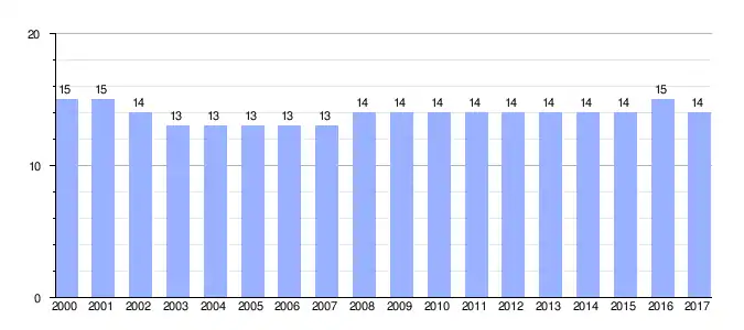 Gráfica de evolución demográfica de Las Fraguas entre 2000 y 2017 |