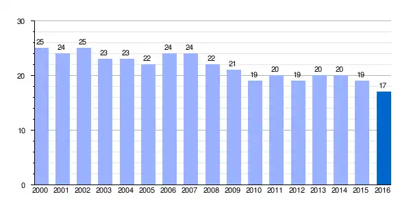 Gráfica de evolución demográfica de Las Gorgollitas[1] entre 2000 y 2016 |