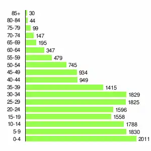 Fuente: «INDEC. Población de ciudades de Santa Cruz según edad». Archivado desde el original el 4 de marzo de 2016. Consultado el 12 de diciembre de 2013. |