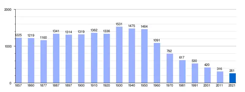 Gráfica de evolución demográfica de Las Omañas[15] entre 1857 y 2021 |