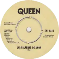 - "Las Palabras de Amor" (Single liner notes). Queen. UK: EMI Records. 1982. EMI 5316.