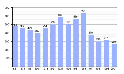 Gráfica de evolución demográfica de Las Plassas entre 1861 y 2001 |