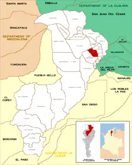![]() Ubicación de Las Raíces en el municipio de Valledupar | ||