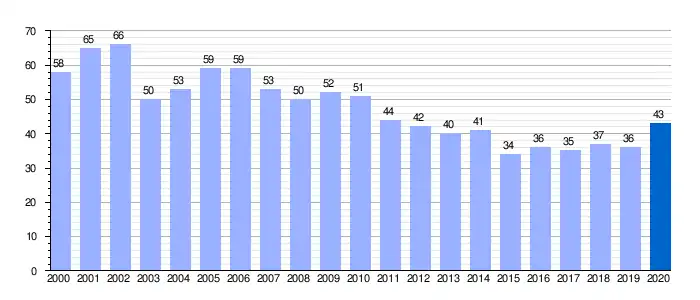 Población residente (2000-2019) según los censos de población del INE. Población según el padrón municipal de 2020 del INE. |