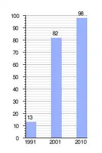 Gráfica de evolución demográfica de Las Vertientes entre 1991 y 2010 |