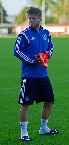 Debutó el 12 de agosto de 2009, con la selección de fútbol de Dinamarca, en un encuentro amistoso ante la selección de Chile que finalizó con marcador de 2-1 a favor de los chilenos.[14]En 2018 fue uno de los 23 convocados para disputar el Mundial de Rusia, en el que cayeron eliminados en octavos de final ante Croacia.[15][16]