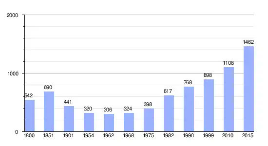 Los datos entre 1800 y 2015 son el resultado de sumar los parciales de las dos comunas que forman la nueva comuna de Lasserre-Pradère, cuyos datos se han cogido de 1800 a 1999, para las comunas de Lasserre[4]y Pradère-les-Bourguets[5]de la página francesa EHESS/Cassini. Los demás datos se han cogido de la página del INSEE.[6]
