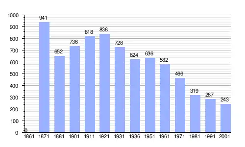 Gráfica de evolución demográfica de Lastebasse entre 1861 y 2001 |