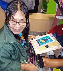 Los ibo (dueños) se convierten en los protagonistas de la obra de esta pintora, ceramista y bordadora shipibo-konibo. Y es a través de su obra que también podemos acercarnos al kene, diseño de la cosmovisión shipibo-konibo, que practican y transmiten las mujeres.[6]