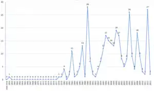 Un artículo de la edición de diciembre de 2008 de la revista Time utilizó una encuesta estadística informal para analizar el uso de la frase dentro de las publicaciones Diario del Pueblo, señalando que durante el periodo entre 1946 y 2006 hubo más de 100 artículos acusando a un blanco de haber "lastimado los sentimientos del pueblo chino".[17] En junio de 2015, el Global Times publicó un análisis que concluyó que el Diario del Pueblo había publicado, entre el 15 de mayo de 1946 y el 1° de mayo de 2015, 237 artículos con acusaciones en contra de 29 diferentes países de haber lastimado sentimientos; entre estas acusaciones, 9 eran en contra de la India, 16 contra Francia, 62 contra Estados Unidos y 96 contra Japón.[18]