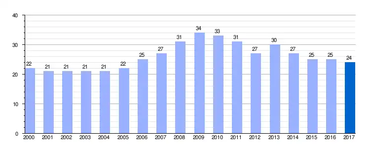 Gráfica de evolución demográfica de Lastras de Teza entre 2000 y 2017 |