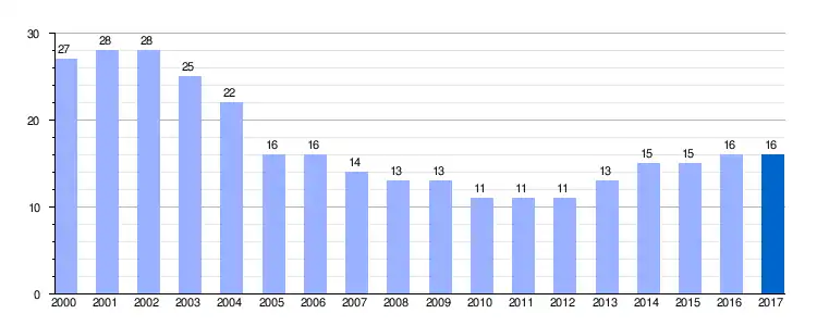 Gráfica de evolución demográfica de Lastras de la Torre entre 2000 y 2017 |