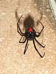 Se conoce como latrodectismo al cuadro general causado por la mordedura de las arañas del género Lactrodectus, que si bien es inaparente en el momento de la misma, causa unos minutos más tarde dolor local y eritema, que a veces no se relaciona con la mordedura de la araña. Sin embargo, horas tras la mordedura presenta dolores cada vez más intensos por todo el cuerpo, sensación de ardor o escozor en la planta de los pies, calambres y espasmos musculares, hiperreflexia osteotendinosa, rigidez de la pared abdominal, posición fetal de la víctima, priapismo, retención urinaria, fasciculaciones, parestesias, cefaleas, náuseas, vómitos, sudoración profusa y ansiedad extrema.[8] Las contracciones musculares y la fascies latrodéctica por contractura de los maseteros, puede hacer confundir el cuadro con un tétanos o intoxicación por estricnina. El abdomen duro o "en tabla" puede llevar a diagnósticos erróneos de abdomen agudo, e incluso a motivar por ello laparotomías o apendicectomías erróneas.[2] Además puede aparecer febrícula, delirio, insuficiencia renal, convulsiones y fallo cardiopulmonar. Estas últimas complicaciones son raras, siendo la mortalidad inferior al 5%.[8]