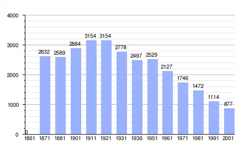 Gráfica de evolución demográfica de Lauco entre 1861 y 2001 |