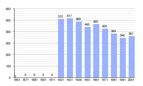 Gráfica de evolución demográfica de Lauregno entre 1861 y 2001 |