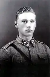 ![]() Lauri Allan Törni con el uniforme de las Waffen SS y el rango de Untersturmführer en 1941 | ||