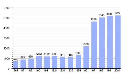 Gráfica de evolución demográfica de Lavena Ponte Tresa entre 1861 y 2001 |