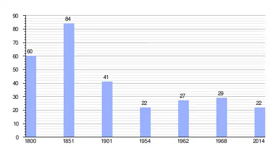 Los datos demográficos contemplados en este gráfico de la comuna de Lavilleneuve-aux-Fresnes[4] se han cogido de 1800 a 1968 de la página francesa EHESS/Cassini. Los demás datos se han cogido de la página del INSEE.[5]