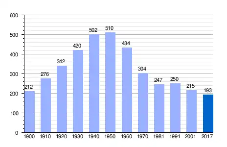 Población de derecho (1900-1991) o población residente (2001) según los censos de población del INE.[6] Población según el padrón municipal de 2017 del INE. |