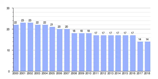 Gráfica de evolución demográfica de León entre 2000 y 2018 |