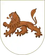 • En campo de plata, león rampante de púrpura, linguado y uñado de gules, y coronado de oro.Carlos Grixalba, Enciclopedia de heráldica, Capítulo 3, Diccionario onomástico y toponímico.