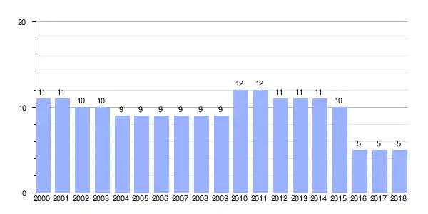 Gráfica de evolución demográfica de León de Abaixo entre 2000 y 2018 |