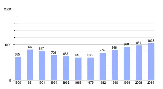 Gráfica de evolución demográfica de Le Bény-Bocage entre 1800 y 2014 |