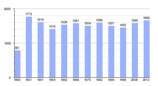 Los datos demográficos contemplados en este gráfico de la comuna de Le Fief-Sauvin[4] se han cogido de 1800 a 1999 de la página francesa EHESS/Cassini, y los demás datos de la página del INSEE.[5]