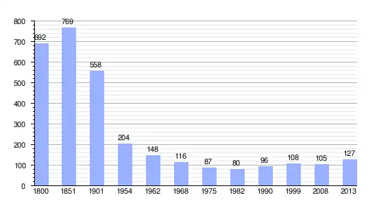 Gráfica de evolución demográfica de Le Grand-Abergement entre 1800 y 2013 |