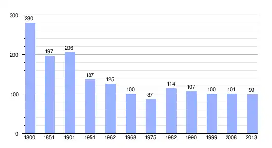 Gráfica de evolución demográfica de Le Lou-du-Lac entre 1800 y 2013 |