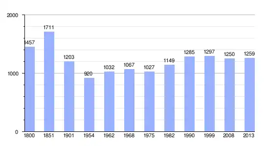 Gráfica de evolución demográfica de Le Montsaugeonnais entre 1800 y 2013 |