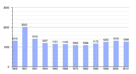 Los datos demográficos contemplados en este gráfico de la comuna de Le Vieil-Baugé[5] se han cogido de 1800 a 1999 de la página francesa EHESS/Cassini, y los demás datos de la página del INSEE.[6]